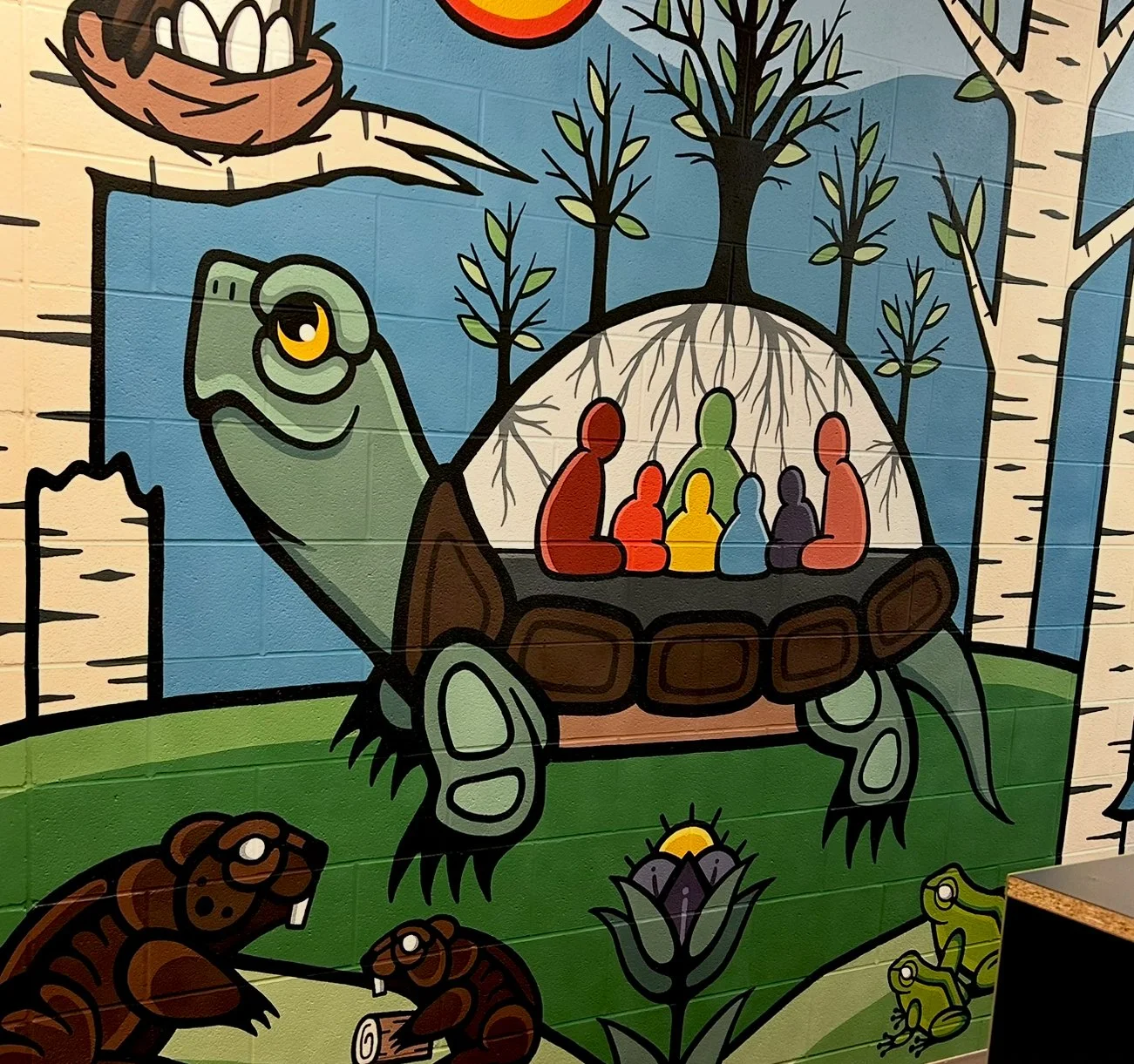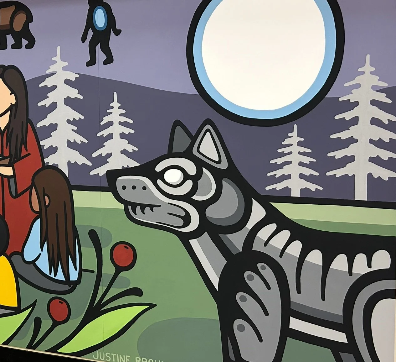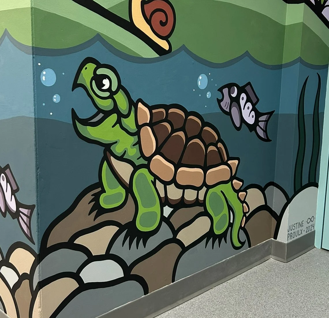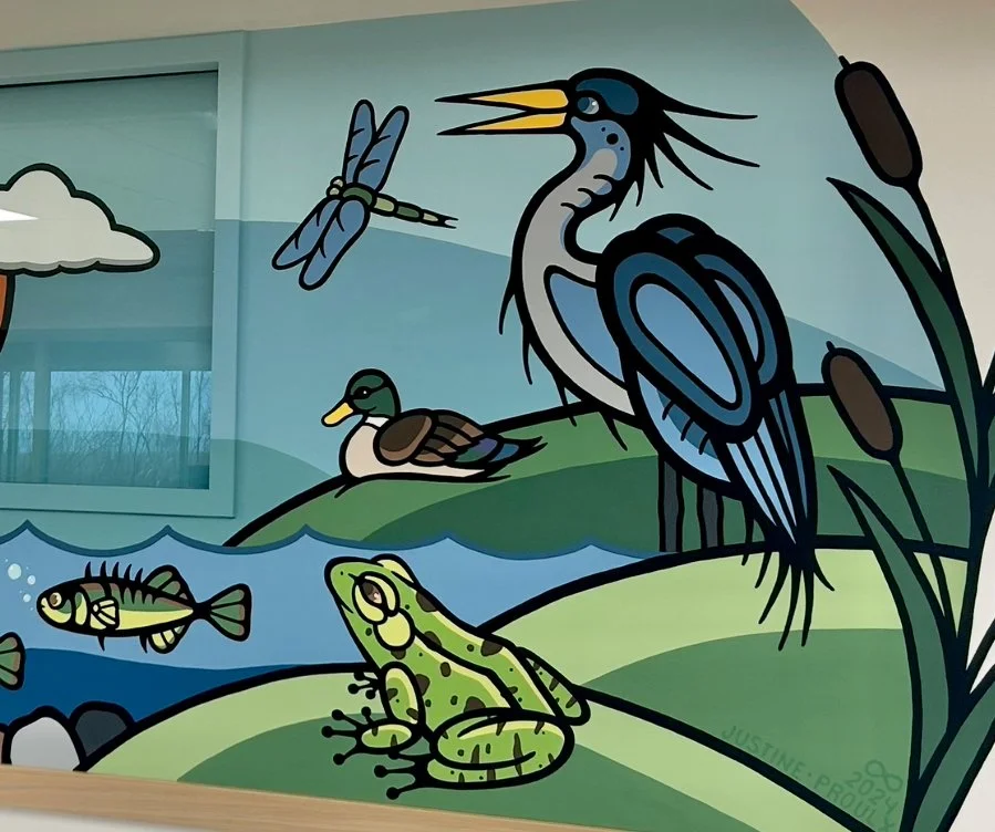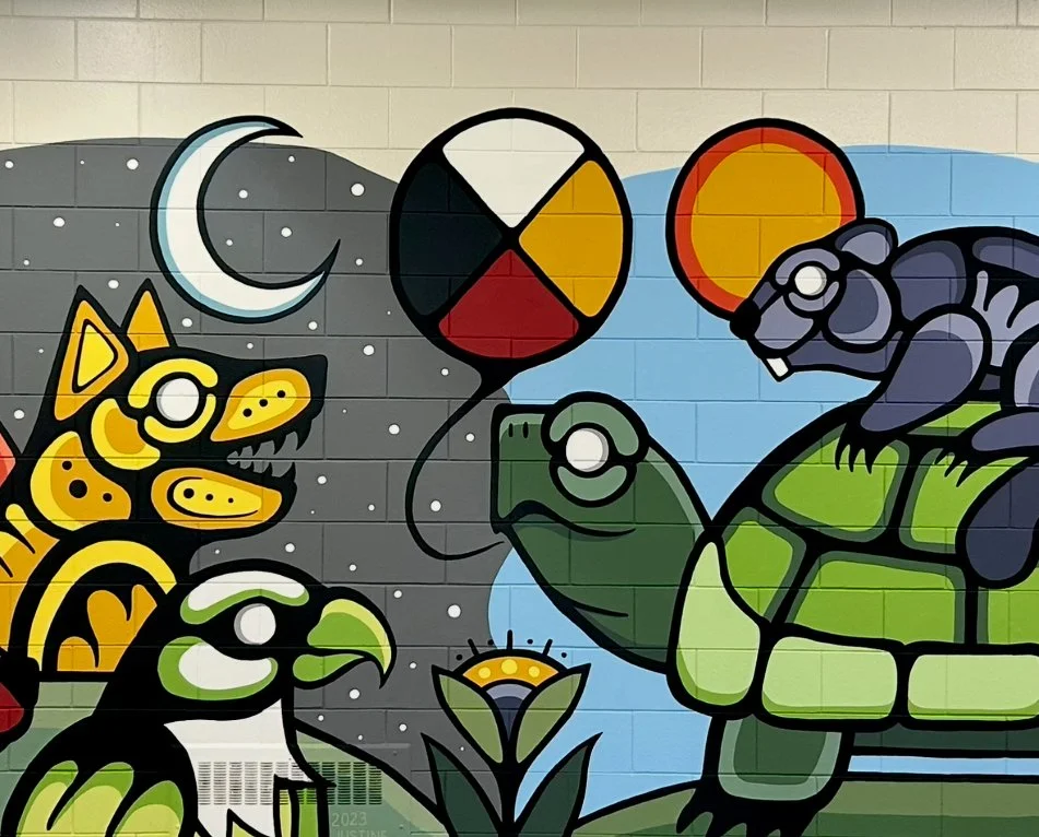 If you are interested in getting a mural done, please send me an email at justineproulxartistry@gmail.com ! I also invite you to visit my Workshops page to explore the workshops and presentations I offer. These are a wonderful way to involve students and communities in the creative process, while also deepening understanding of Woodland art and the teachings carried within it.