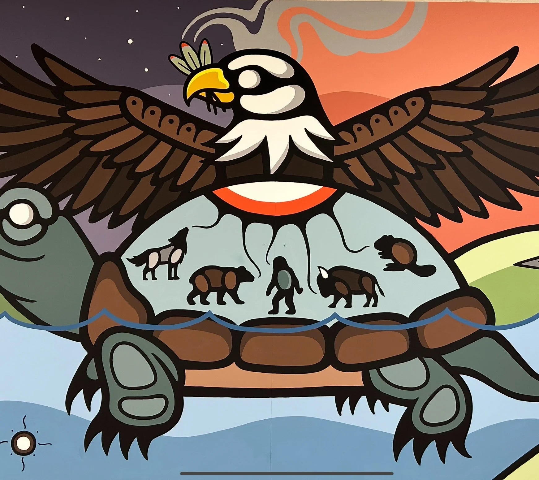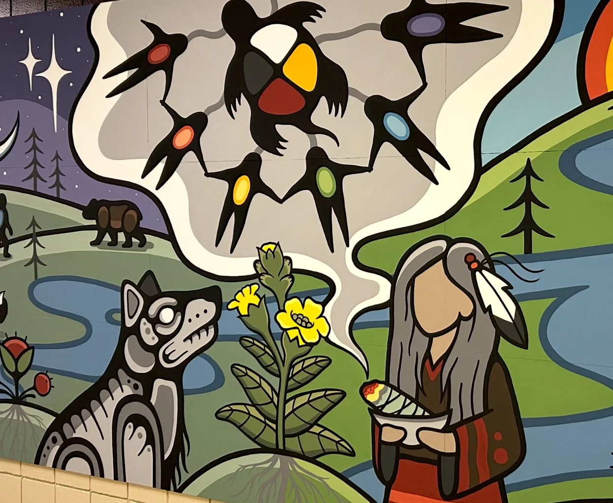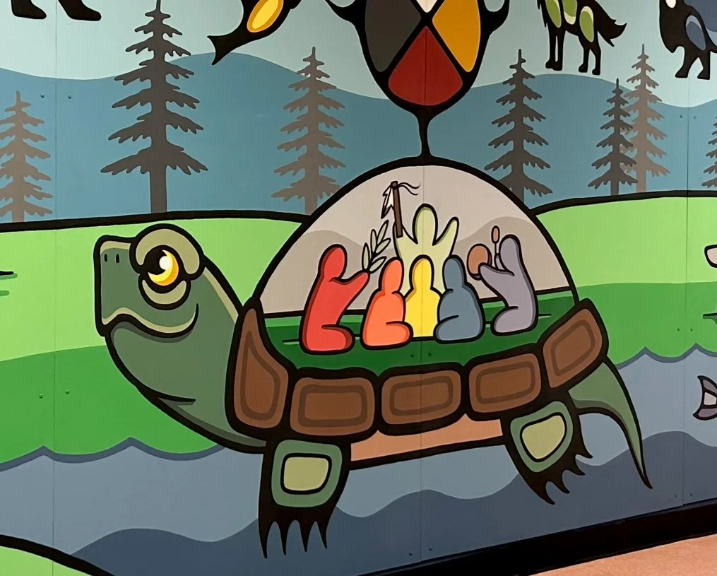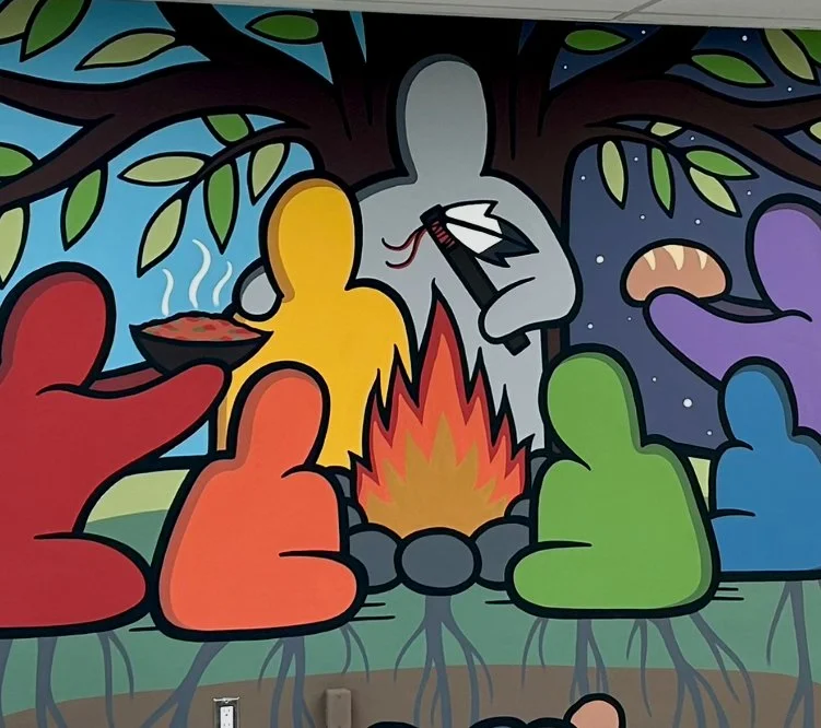 For me, creating murals is more than painting walls, it is ceremony, storytelling, and relationship-building. These works invite people to pause, reflect, and remember that we are all part of something larger than ourselves, bound together by the land and the teachings it carries.